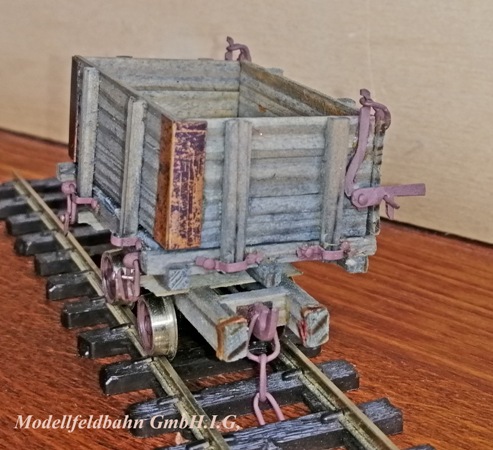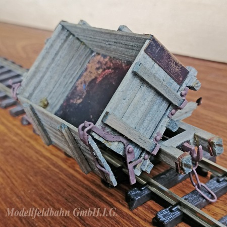 Wie beim Vorbild verfügt der Kastenkipper über Kastenklinken. Sie funktionieren so wie beim Vorbild. Ebenso wird der Kasten von Ösen gehalten, die nach dem Aushängen das Kippen des Kastens ermöglichen