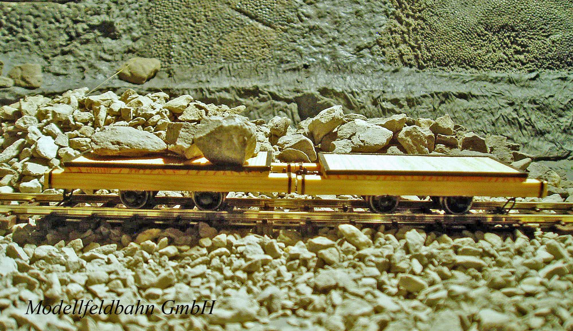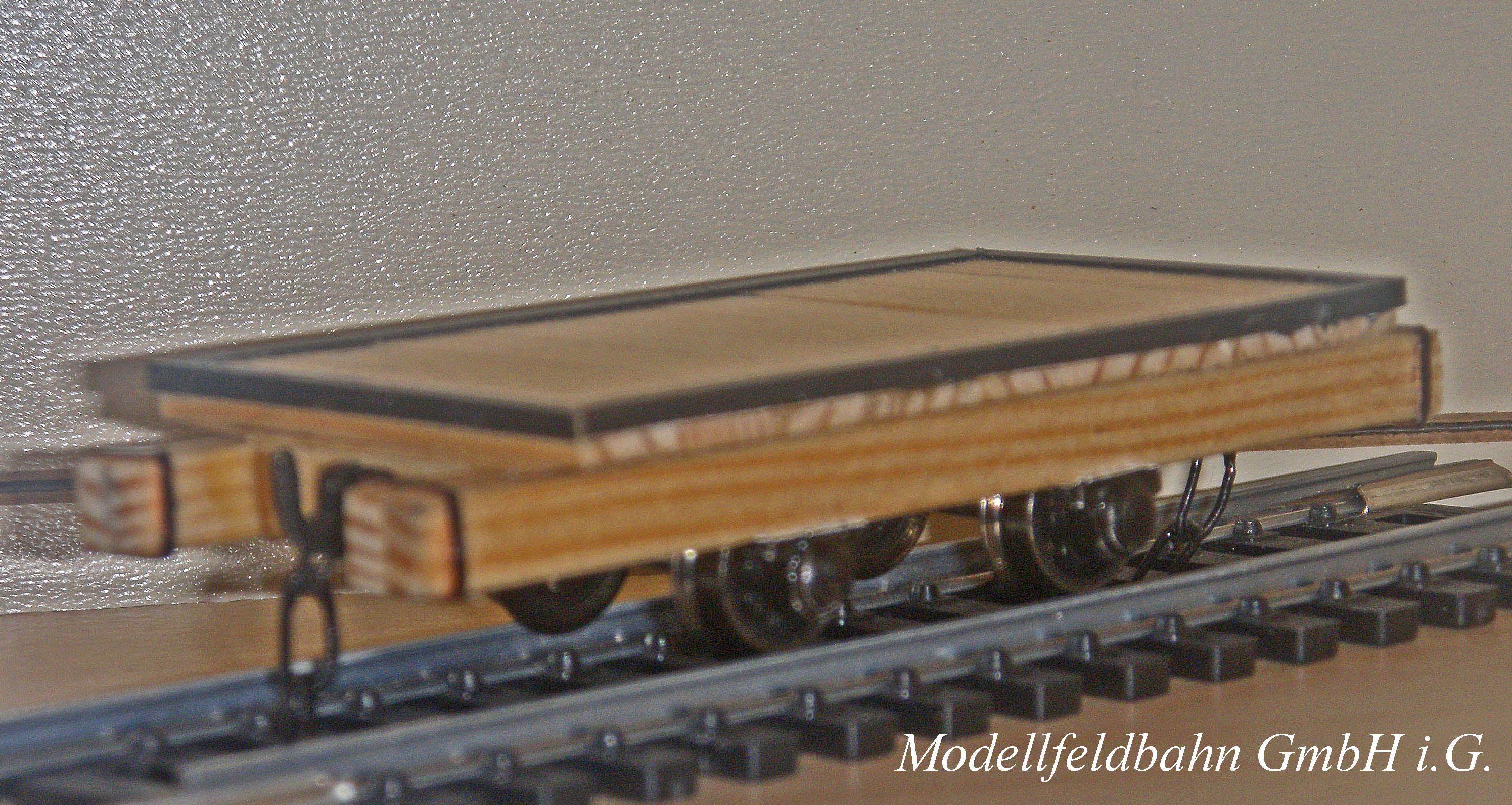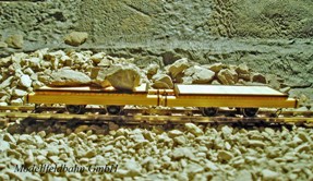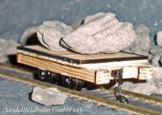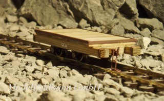 Le wagonnets plat en bois apte à des transports lourds est fabriqué en bois écologique des pins suisses, cuivre, laiton, maillechort, matière plastique pour l’isolement des roues et acier inoxydable et acier nickelé pour les axes. Seulement des pièces tournées et fraisées à l’échelle sont utilisées (1:87) en évitant toute sorte de pièces à gravure à corrosion. Les pièces de laiton et cuivre sont brasées et fraisées et le bois fraisé, coupé et collé à main. Seulement les ferrures sont peintes noir, le reste porte sa couleur originale du bois non traité comme en réalité. (Un traitement de couleur pour le bois est sur demande et prix supplémentaire possible, sous la condition d’une description exacte.) Le wagonnet est livré sans pierres |