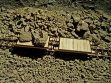 Wagonnet pour le transport des pierres très lourdes, avec une plus haute capacité à charger qu’avec des châssis en bois (wagonnet basculant en bois).