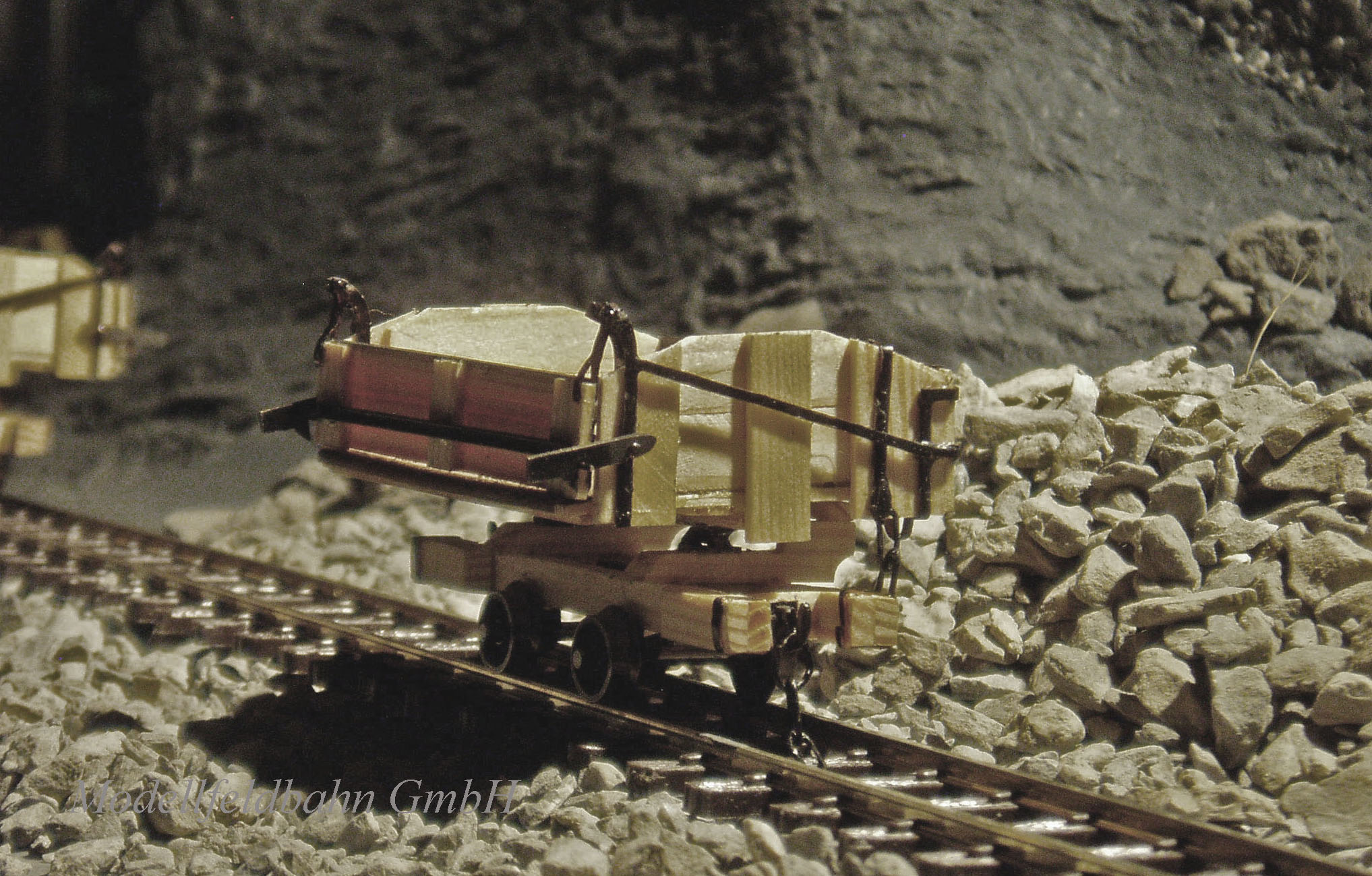 The weathered quarry woodtipper version (Like IRR) with steel base sheet and angle and bord protection angles firmly mounted. For the use in quarries e.g. For other gauges, please ask Weathered and detailed after customer desire. |